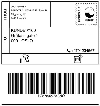 Retur etikett (99 kr): Brukes dersom du ønsker å returnere en vare og få pengene tilbake.